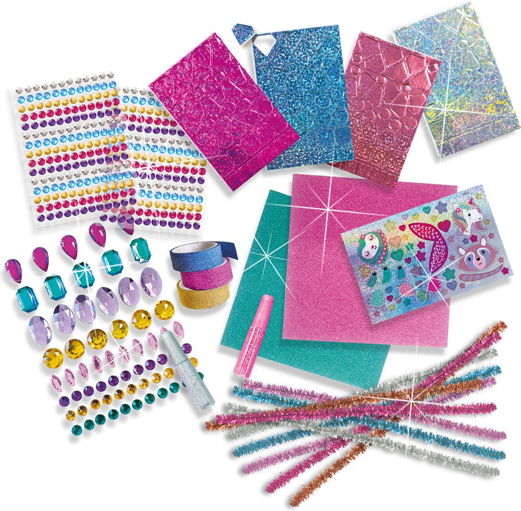 - Incluye más de 600 piezas para decorar: diamantes, brillitos, stickers y más.