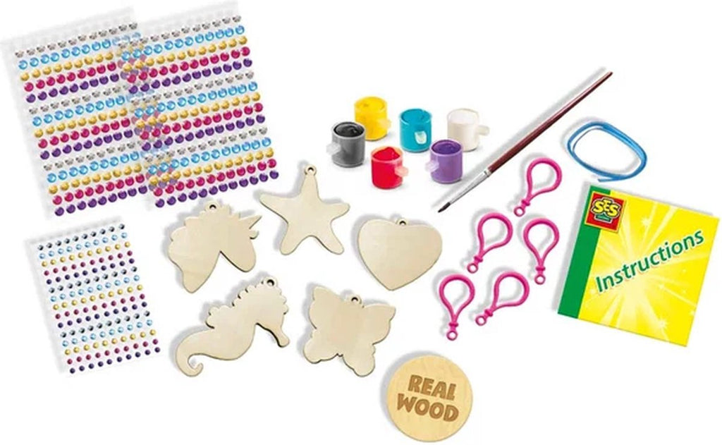 Con el set de llaveros de madera con pintura de diamantes de SES Creative, puedes crear llaveros únicos y brillantes que podrás llevar a todas partes. Decora las formas de madera con diamantes de colores y dale a tus llaves, bolso o regalo un toque personal y brillante. Perfecto para niños a partir de 6 años que aman las manualidades creativas y el brillo.