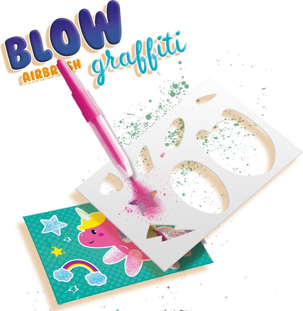 • Incluye 6 rotuladores tipo aerógrafo para pintar soplando.