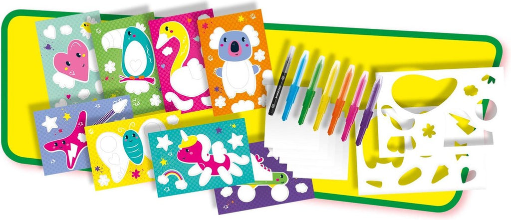 Con este set, los niños pueden experimentar con colores, formas y técnicas. La combinación de aerógrafo, plantillas y contornos le da a cada pieza un auténtico aspecto de grafiti. Una forma fantástica de dar rienda suelta a su creatividad y crear algo único.