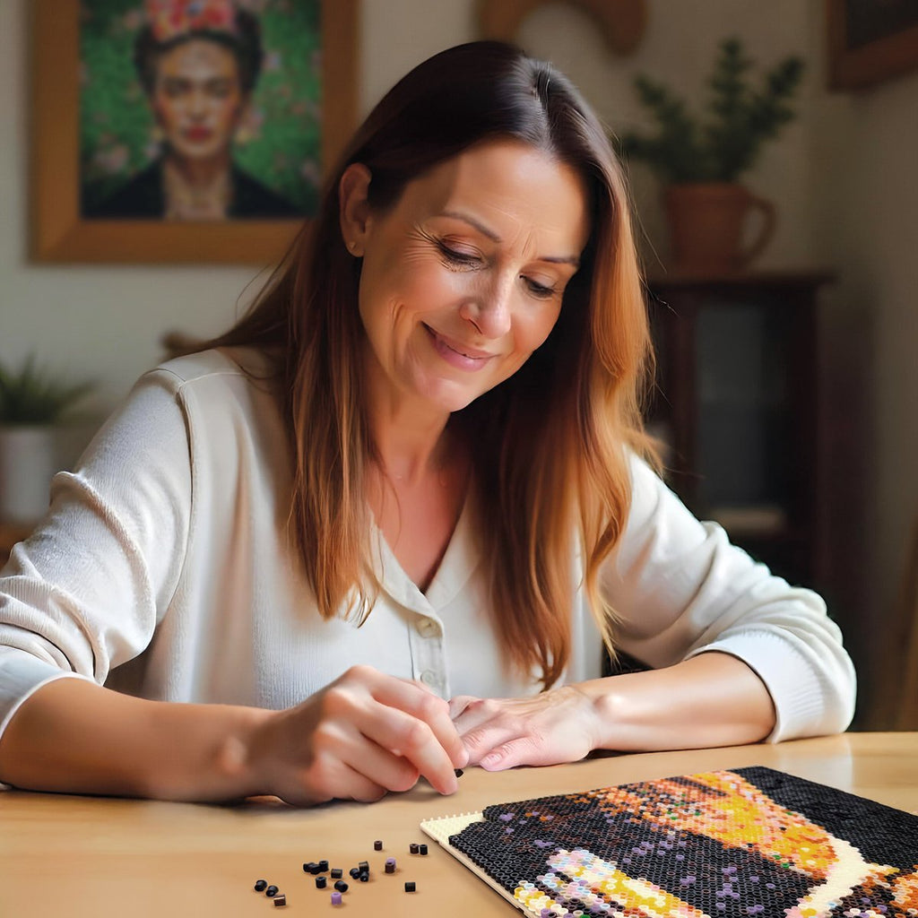 Con Beedz Art, puedes transformar miles de cuentas Perler en una verdadera obra de arte. Gracias a las instrucciones claras y la mezcla perfecta de cuentas, lograrás un resultado detallado e impresionante que refleja a la perfección el estilo expresivo de Frida Kahlo. Una actividad relajante que combina arte y creatividad a la perfección.