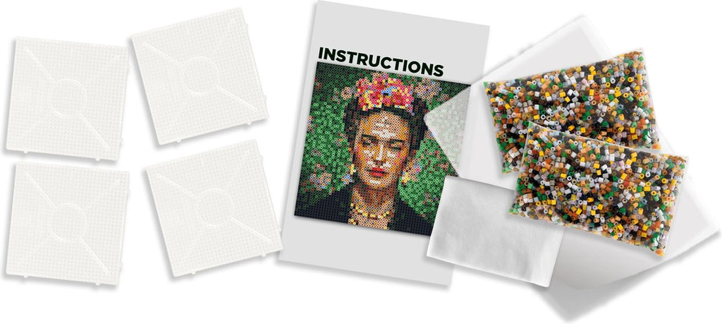 Descubre la alegría de Beedz Art y crea tu propio retrato de Frida Kahlo. Un exclusivo set de cuentas termoadhesivas que combina arte y creatividad: ¡perfecto para horas de diversión creativa y un hermoso complemento para tu hogar!