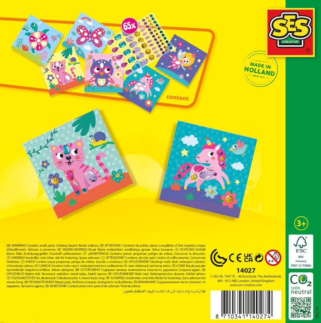 ¡Deja volar tu creatividad con el Set Creativo de Pintura de Diamantes con Gemas Gigantes de SES! Esta divertida manualidad está especialmente diseñada para niños pequeños e incluye pegatinas de diamantes extragrandes de diversos colores y formas. ¡Pega las piedras brillantes en las tarjetas adhesivas incluidas y observa cómo tu obra cobra vida!