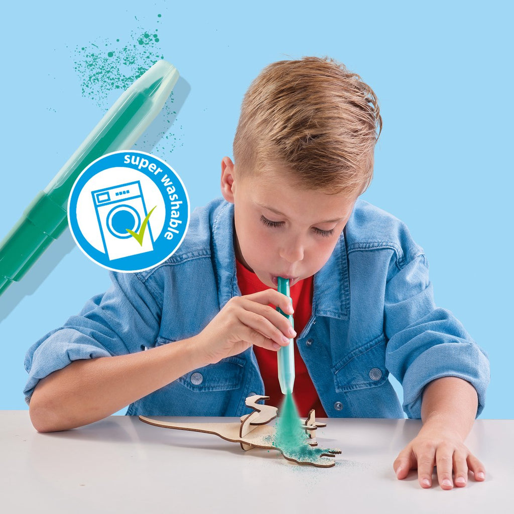 Descubre la alegría del arte con aerógrafo con este set de dinosaurios y crea tus propias y coloridas obras maestras. ¡Perfecto para horas de diversión creativa!